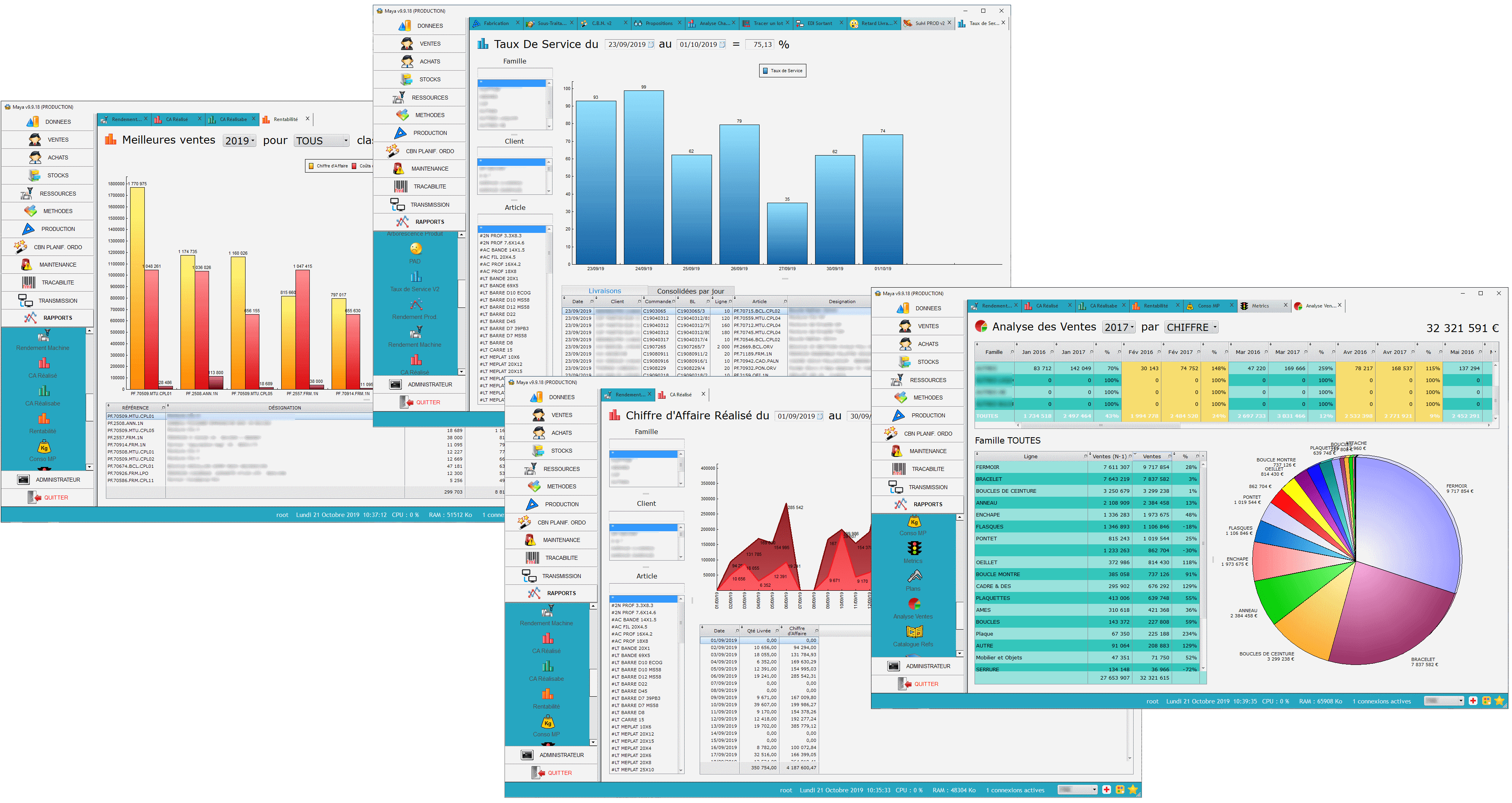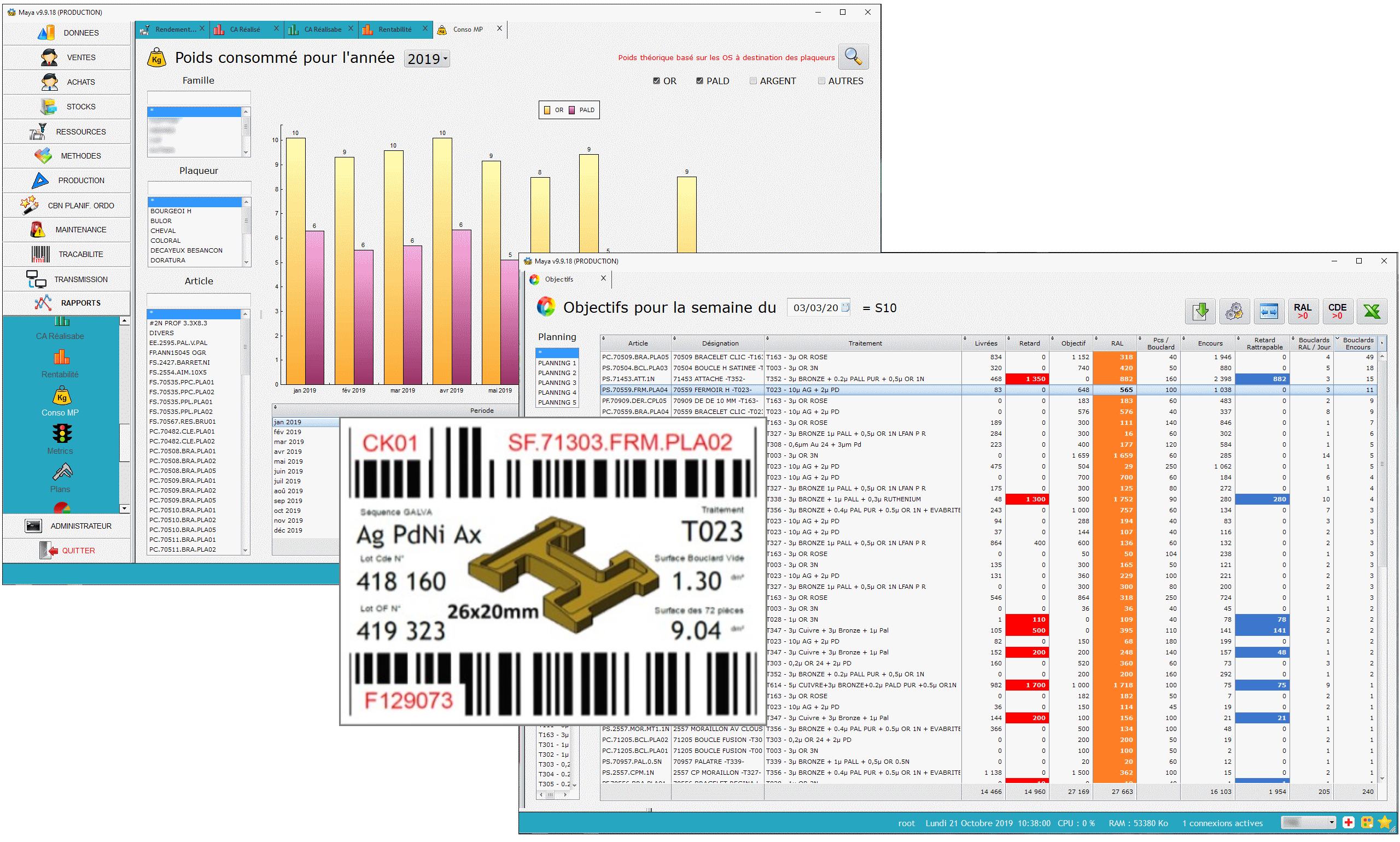Programme de gestion de production multi-sociétés, développé en collaboration avec le groupe FMI-Sycrilor, le système se compose d'outils ergonomiques et simples, qui répondent aux besoins spécifiques des métiers de l'industrie du luxe : Gestion commerciale, Supply chain, Stocks, Gestion de production, Ressources, Gammes et Nomenclatures, CBN et planification de la charge, indicateurs Qualité, Objectifs, Suivi de production, Traçabilité, Consommation des Métaux Précieux, Analyses comptables et financières, EDI inter-sociétés et passerelles d'intégration depuis/vers les ERP des clients, Tablettes de Contrôle Qualité, Portail Web de consultation, ...