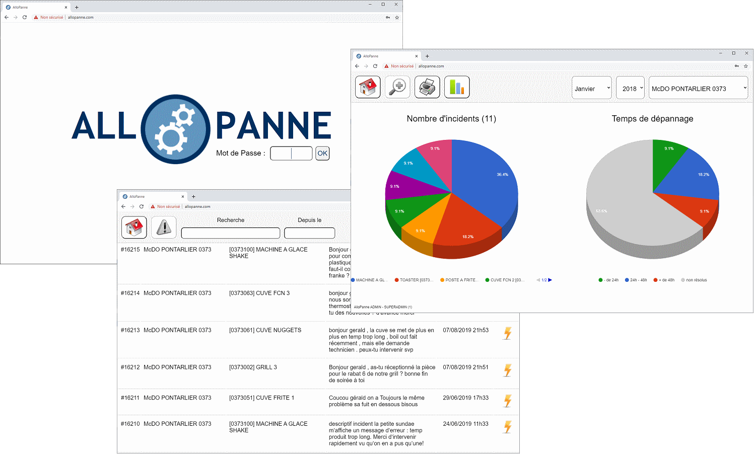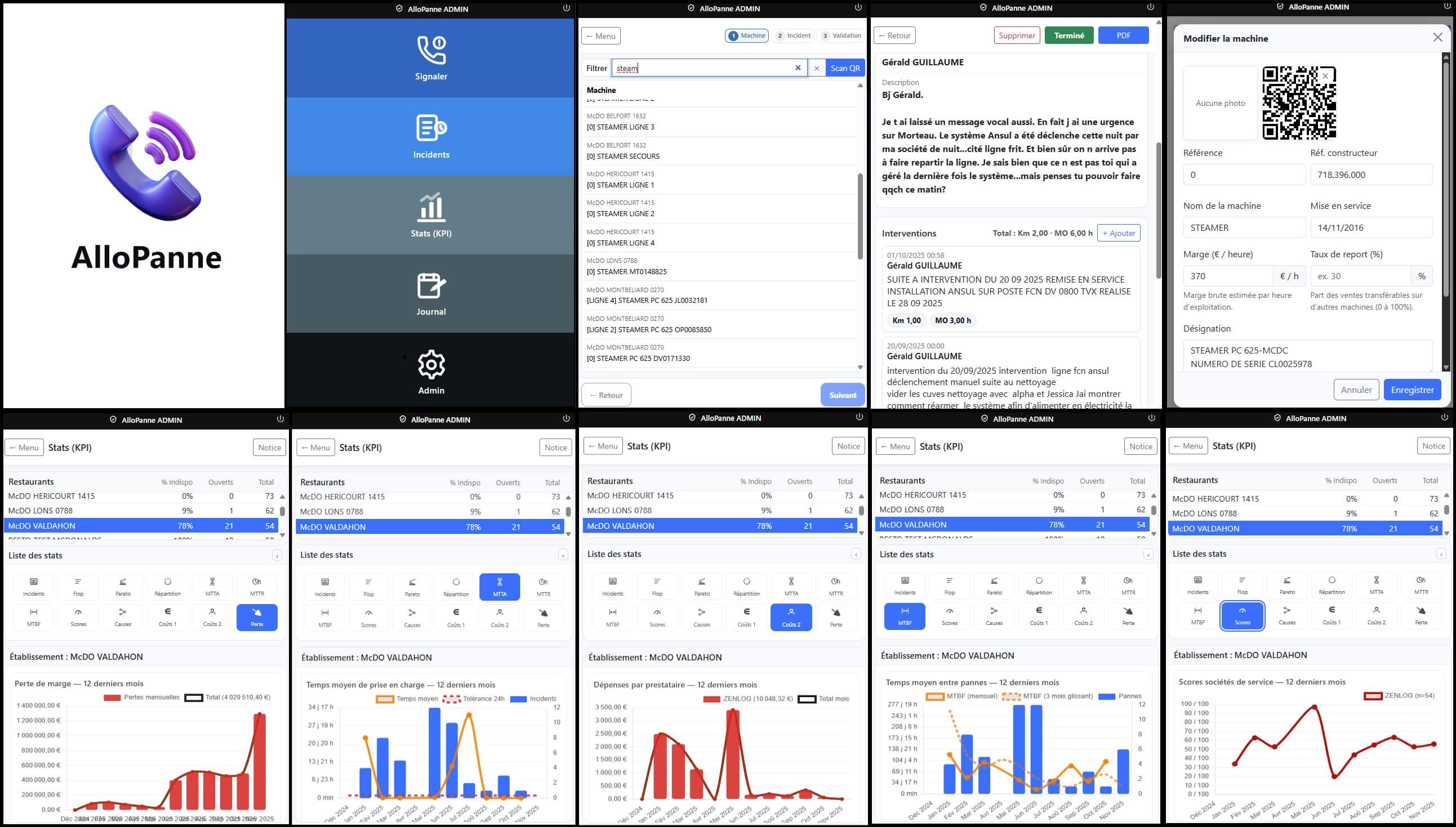 Portail WEB facilitant la mise en relation des enseignes de restauration rapide et des professionels du dépannage. Gestion et affectation de tout ou partie du parc machine à un prestataire, alertes sms, suivi d'incident, entretien préventif, taux de service, ...